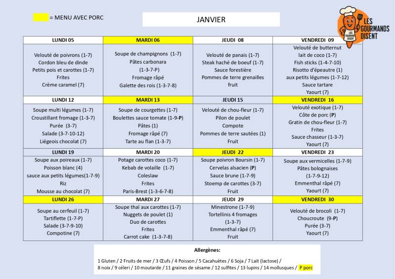 Menu du mois